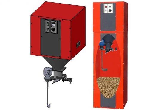 Der PX15-20 hat im oberen Bereich einen ca. 175 Liter großen integrierten Vorratsbehälter. Es ist angedacht, dass dieses Silo vom Betreiber aller 3-5 Tage mit Pellets aus Säcken nachgefüllt wird, was bei einer Einfüllhöhe von rund 1,4m kein Problem darstellt. Zusätzlich besteht auch die Möglichkeit, die ATMOS BasicOne Ansaugstation auf das Silo zu montieren, was ein händische Nachfüllen hinfällig macht. Mit dieser kann das integrierte Silo aus einem maximal 15m entfernten Hauptlager automatisch befüllt werden.